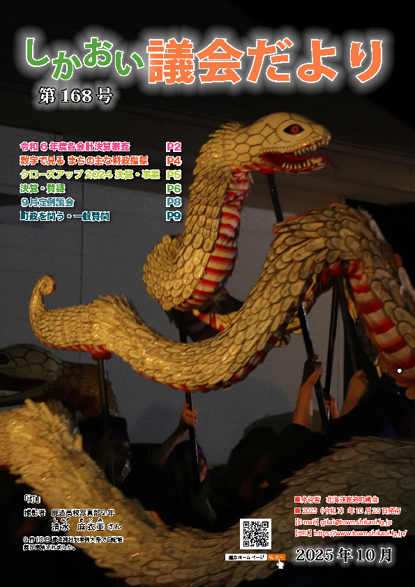 - 「しかおい議会だより」168号(2025.10月)(PDF形式:7MB)