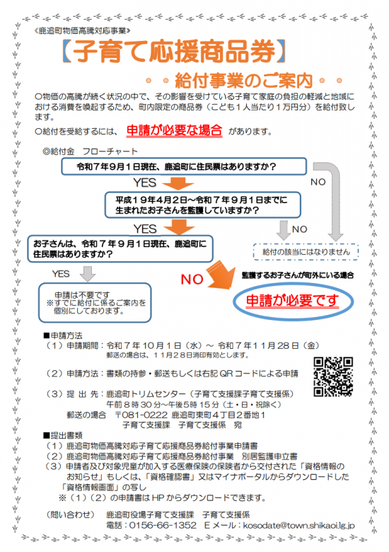 鹿追町物価高騰対応子育て応援商品券給付事業について