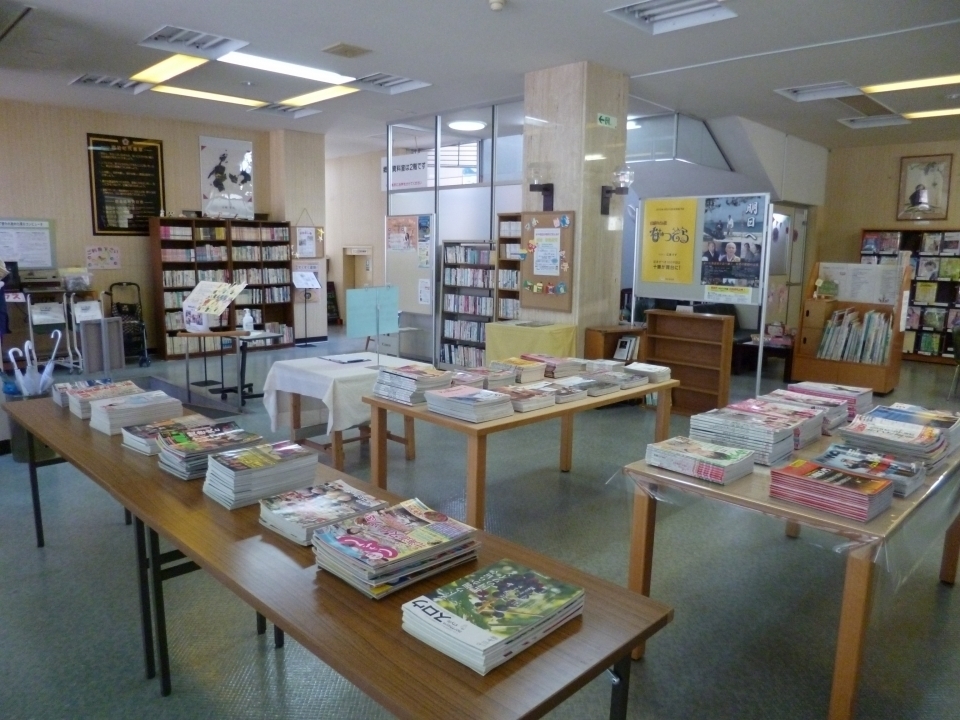 図書館ではスペースに限りがあり、やむなく保存期限を決めて蔵書の除籍を実施しています。その除籍資料を町民の皆さんへ還元するリサイクル事業として「雑誌・書籍還元」を行っています。