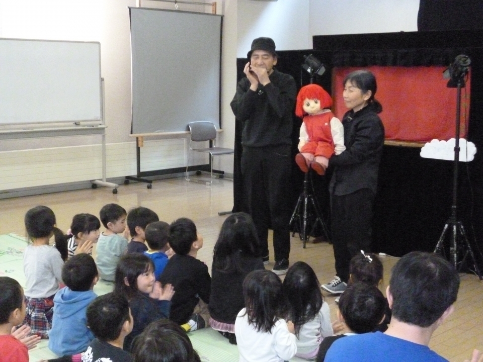 今回は「3匹のこぶた」と「双子の星」の演目で人形劇を行いました。「3匹のこぶた」ではおおかみのユーモアたっぷりの動きに笑い声がおきて、幻想的なマリオネット「双子の星」はその美しさに見とれました。