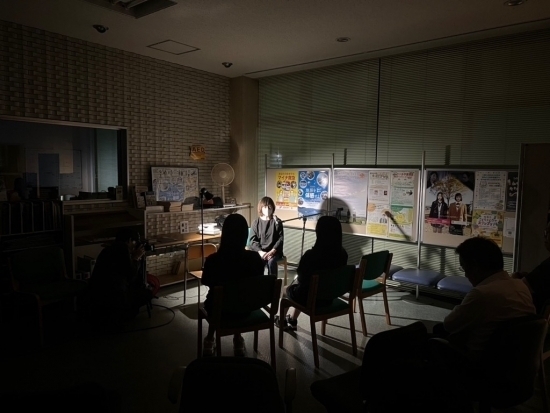夜の図書館の中で照明を落として、暗がりの中、図書館スタッフが選んだ怪談話の朗読や参加者の恐怖体験の語りなどあっという間の一時間半。